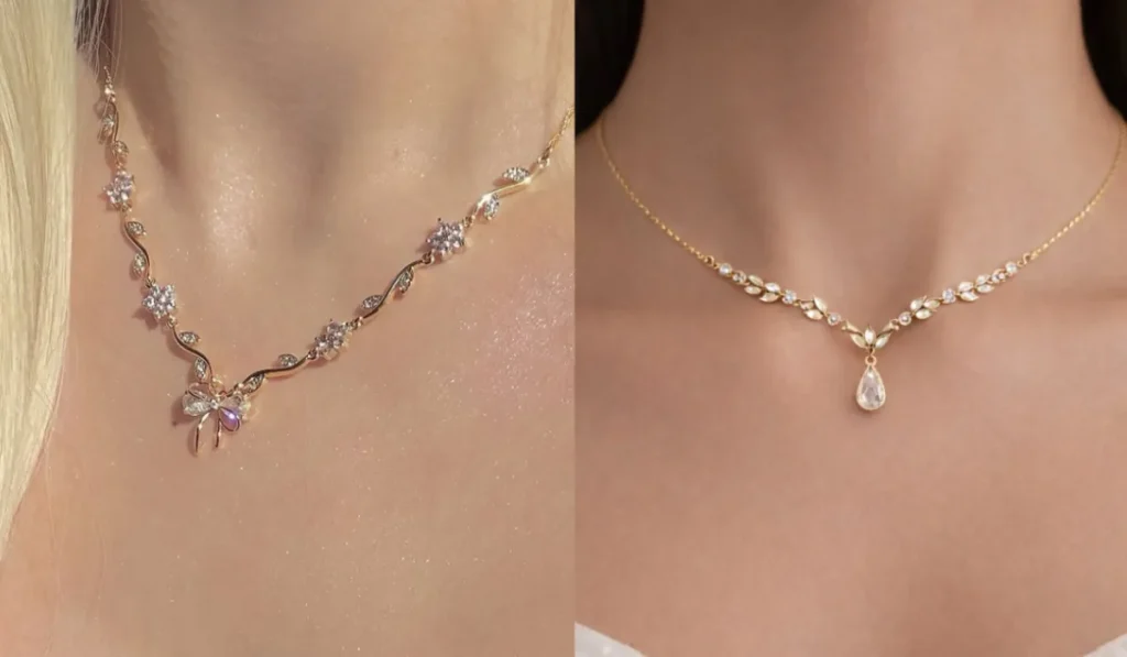 भारी ज्वेलरी का जमाना अब जा चुका है. आजकल ज्वेलरी जितनी कम और एलिगेंट होगी, लुक उतना ही अच्छा दिखेगा. मिनिमल नेकलेस, खासकर साड़ी और सूट के साथ, एक बढ़ता हुआ ट्रेंड है. ये नेकलेस न सिर्फ पहनने में कम्फर्टेबल होते हैं, बल्कि आपके ओवरऑल लुक में क्लास और एलिगेंस भी जोड़ते हैं। अगर आप बिना ज्यादा सजावट के स्टाइलिश दिखना चाहते हैं, तो मिनिमलिस्ट नेकलेस एक बढ़िया ऑप्शन हैं। आप इन्हें रोजाना पहनने से लेकर फंक्शन तक आसानी से कैरी कर सकते हैं. सही नेकलेस चुनकर, आप बिना ज़्यादा एफर्ट के अपने आउटफिट को बेहतर बना सकते हैं. यह नेकलेस आपके लुक का स्टेटमेंट पीस बन जाएगा. यहां आपको कुछ बेहतरीन डिजाइन दिखाए गए हैं.
