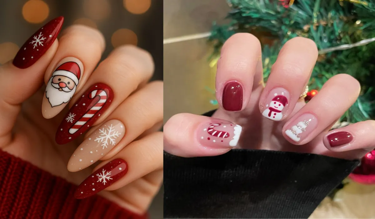 यह क्रिसमस पार्टी के लिए बिल्कुल परफेक्ट है. क्यूट सैंटा, केक और कैंडी से बना यह नेल डिजाइन बहुत ही क्यूट लग रहा है.