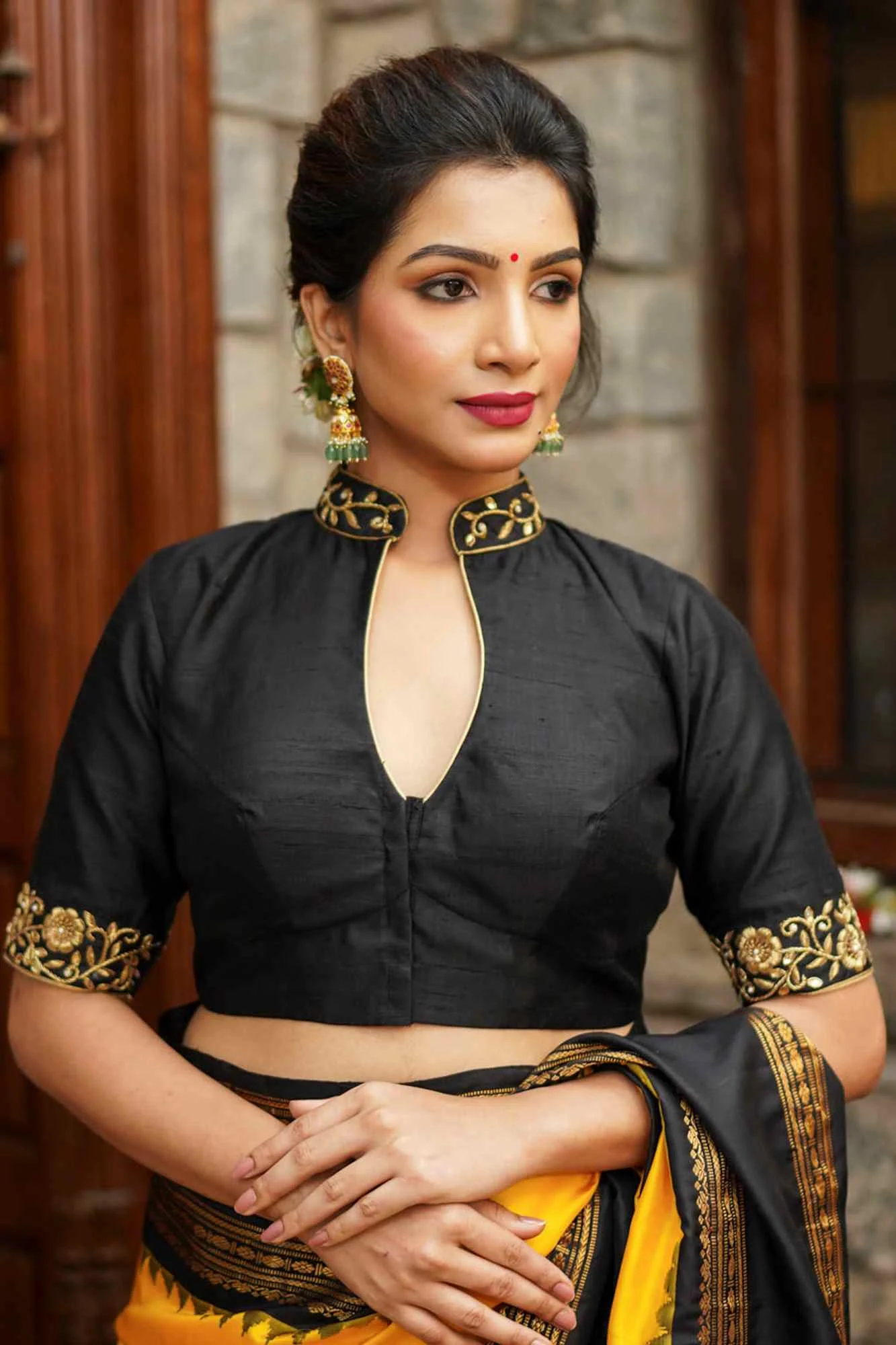 यह डिजाइन खासतौर पर उन महिलाओं के लिए परफेक्ट है जो पारंपरिक लुक में वेस्टर्न टच देता है. फ्रंट बटन, स्ट्रक्चर्ड कॉलर और फिटेड स्लीव्स के साथ यह ब्लाउज कॉटन, लिनन या साटन में बहुत खूबसूरत लगता है.