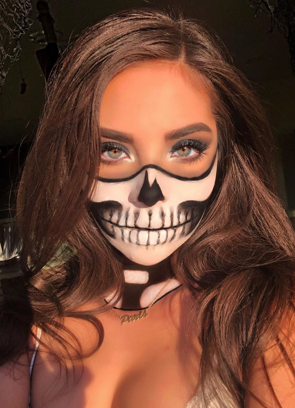 आधे चेहरे पर कंकाल वाला मेकअप भी सबसे हटके है.