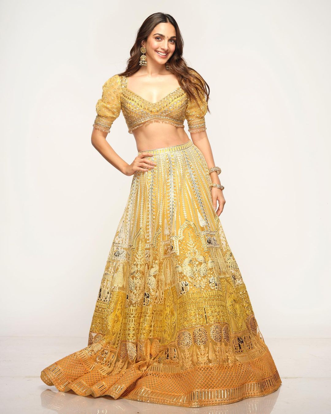 ब्राउन-येलो कलर के लहंगा-चोली में कियारा बेहद हसीन दिख रही हैं.