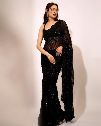 अंकिता लोखंडे की तरह अगर आप भी गर्मी के मौसम में कोई पार्टी अटेंड करने वाली हैं, तो इस तरह की जॉर्जेट साड़ी पहने.