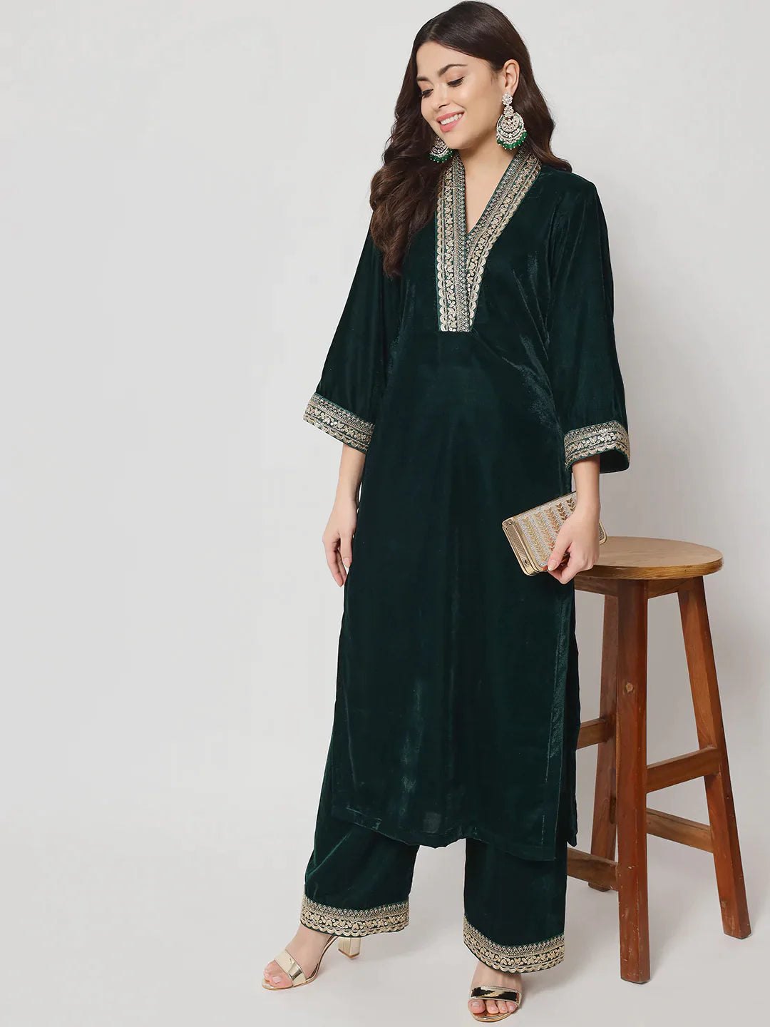 वी नेक कॉलर कुर्तियां आपने कम ही देखी होंगी. इस तरह के सूट सेट अब ट्रेंड करने लगे हैं. आप अपने फेवरेट कलर में इस तरह का कुर्ता सेट आसानी से ऑनलाइन भी खरीद सकती हैं.