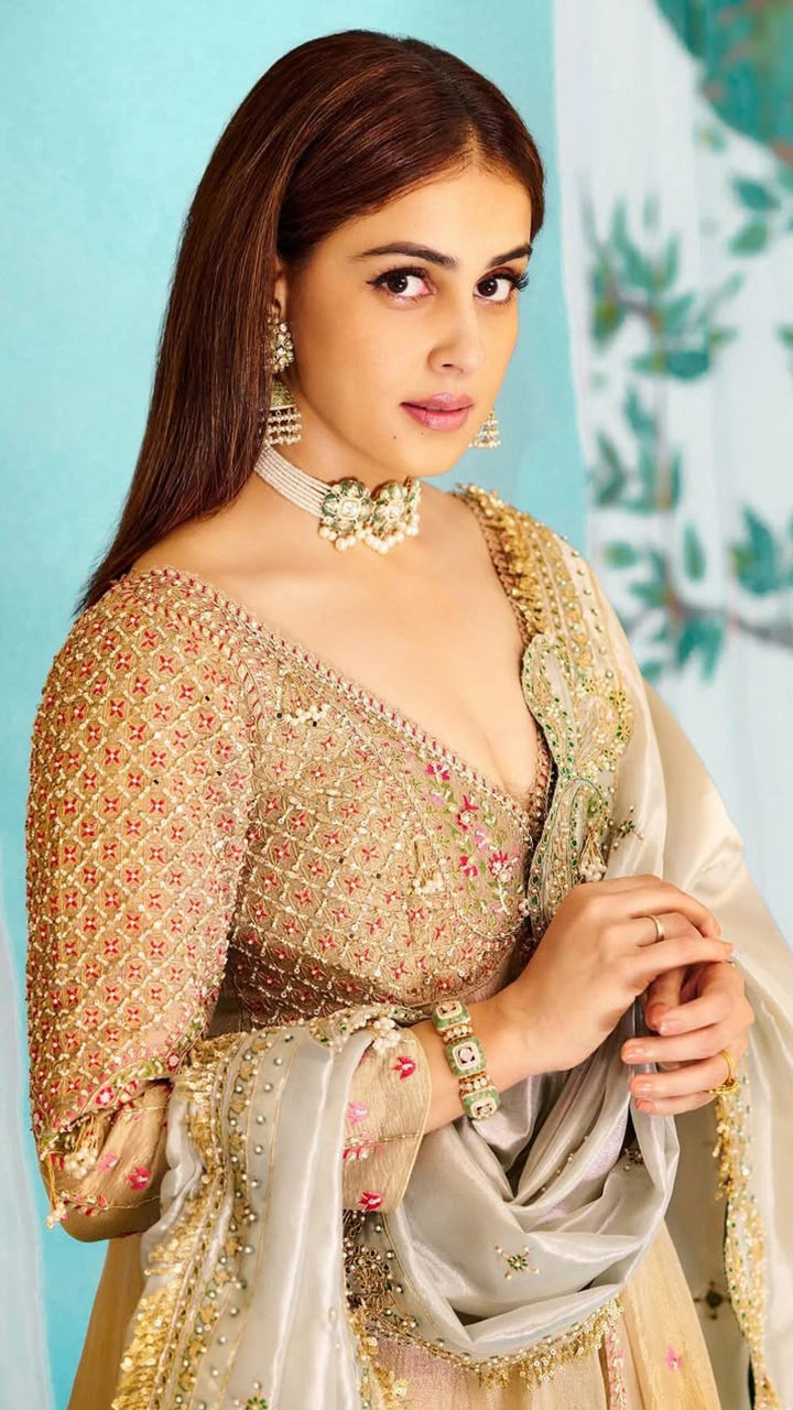 ऑर्गेंजा सिल्क सूट पहनकर जेनेलिया देशमुख किसी अप्सरा से कम नहीं हैं. उन्होंने इस सूट को पोटली बैग, एंटीक जूसरी और गोल्डन जुत्तियों के साथ पेयर किया.