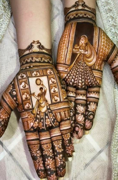 इस तरह के मेहंदी के डिजाइन करवा चौछ पर खूब अच्छे लगते हैं. आप इसे अपनी हाथों की शोभा बढ़ाने के लिए लगा सकती हैं.