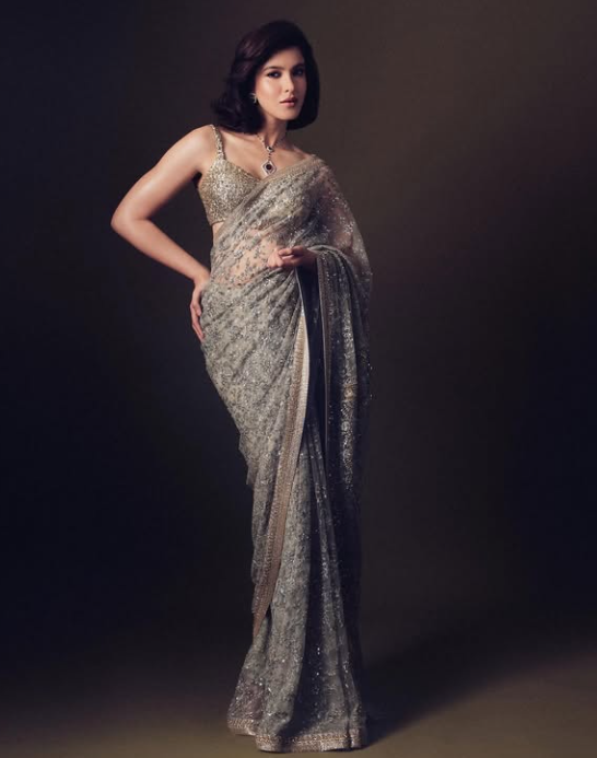 शनाया का ये खूबसूरत सीक्वेंस वर्क ब्लाउज़ पूरी तरह से बैकलेस है. उन्होंने इसे मैचिंग पार्टी वियर साड़ी के साथ कैरी किया है.