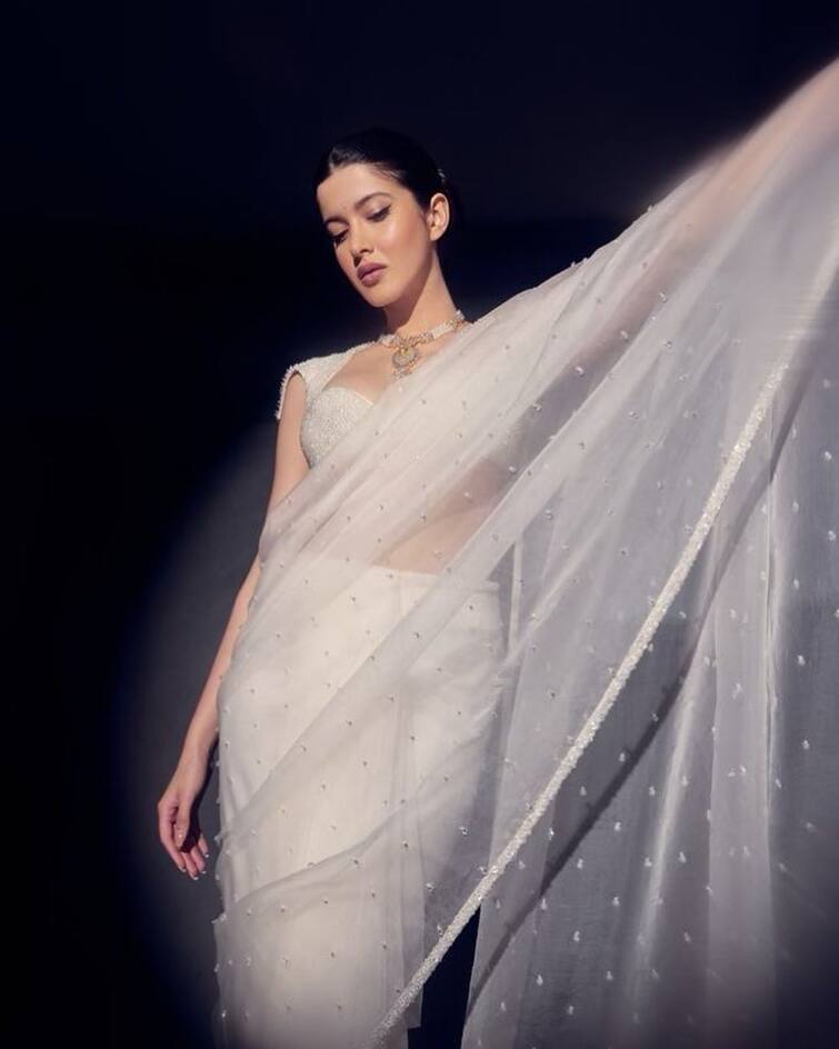 इस ऑफव्हाइट शिफॉन साड़ी में शनाया की स्माइल कातिलाना लग रही हैं.