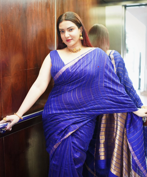 एक्ट्रेस हनी रोज़ का ये साड़ी लुक देखकर आपको भी मिस्टर इंडिया की श्रीदेवी की याद आ जाएगी. खैर, उन्होंने इस साड़ी के साथ खूबसूरत मीनाकारी झुमकी पहनी.