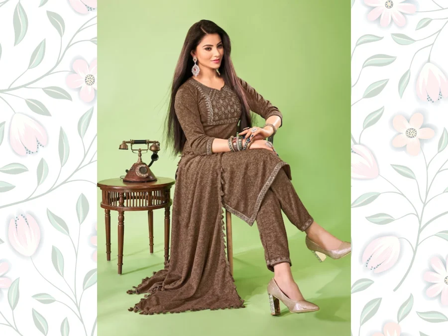 ये वुलन कुर्ता सेट उन लड़कियों के लिए है जिन्हें ज्यादा ठंड लगती है. ऊनी फैब्रिक से बना ये कुर्ता सेट आपको गर्माहट और स्टाइल दोनों देगा. इसके साथ आने वाला दुपट्टा आपके लुक में चार चांद लगा देगा.